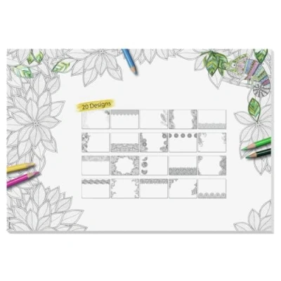 Beautiful design: tear-off paper desk pad “Adult Coloring” – each sheet has a different pattern – a total of 20 different patterns to color IDEAL SIZE: Large paper pad in DIN A2 format (59.5 x 41 cm) with 20 detachable sheets – protects the desk from scratches, stains, and abrasion HIGH QUALITY: Premium FSC-certified detachable paper (80 g/m²) – Made in Germany PERFECT FLATNESS: Corners don’t bend thanks to strong gluing at the top and bottom; The sturdy cardboard backing (600 g/m²) ensures perfect flatness and great writing comfort LOTS OF SPACE: For your notes and creativity