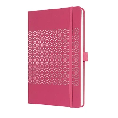 Week to view planner (January to December 2021) "Peacock Pink", hardcover finished using a sophisticated laser cut technique, magenta, size approx. A5 (13.5 x 20.3 cm) 2 pages = 1 week. 174 white (80gsm) and FSC certified pages Planner with many practical features: pen loop, elastic fastener, bookmark, 12 perforated pages, the cover design is repeated on the endpapers Useful extra pages: table of international clothes and shoe sizes, conversion tables, space for jotting down birthdays and gift ideas, and much more besides Novelty: comes with a sheet of stickers to organise and add a personal touch to your personal planner