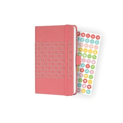 This diary is your colourful, exclusive companion for the whole year. Elegant design meets practical features which enable perfect organisation in both your private and professional life. Ideal as a bound planner. Organise in style - with the popular Jolie weekly diary for 2022 (calendar: 2 pages = 1 week, DE/GB/FR/NL) in approx. A6 format (9,5 x 15 cm) with 174 pages (including 12 perforated pages). The sturdy hardcover in salmon pink guarantees a firm writing surface. Magical laser cut design with a glossy foil background and velvety surface | Extremely durable due to the high-quality stitched binding White paper (80 gsm, FSC-certified), printed in classy grey | Numerous pages with information, motifs and planning templates: monthly and annual overview, school and public holidays (DE/AT/CH/UK/FR/BE/NL), table of measurements, travel destinations, birthdays, and much more besides | Numerous features: elastic fastener, pen loop, insert pocket, bookmark, sticker sheet Box contents: 1x weekly planner, 1x sticker sheet | We recommend the durable tab markers HN201 (6 colours, 60 sheets) to go with this product.