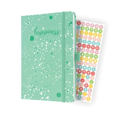 This diary is your colourful, exclusive companion for the whole year. Elegant design meets practical features which enable perfect organisation in both your private and professional life. Ideal as a bound planner. Organise in style - with the popular Jolie weekly diary for 2022 (calendar: 2 pages = 1 week, DE/GB/FR/NL) in approx. A5 format (13,5 x 20,3 cm) with 174 pages (including 12 perforated pages). The sturdy hardcover in mint guarantees a firm writing surface. Trendy cover design with a high-quality finish for stunning effects | Extremely durable due to the high-quality stitched binding White paper (80 gsm, FSC-certified), printed in classy grey | Numerous pages with information, motifs and planning templates: monthly and annual overview, school and public holidays (DE/AT/CH/UK/FR/BE/NL), table of measurements, travel destinations, birthdays, and much more besides | Numerous features: elastic fastener, pen loop, insert pocket, bookmark, sticker sheet Box contents: 1x weekly planner, 1x sticker sheet | We recommend the durable tab markers HN201 (6 colours, 60 sheets) to go with this product.