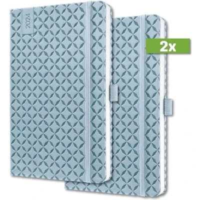 SIGEL J4112 Jolie Weekly planner 2024, hardcover, 9,5 x 15 cm, 174 pages, light Blue, 2 Pieces