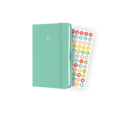 SIGEL J4408 Weekly planner Jolie 2024, FSC certified, 2 pages equal to 1 week, hardcover with a fabric surface, approx. A6, mint Green, 174