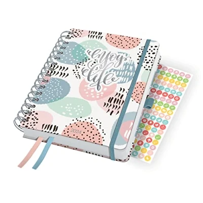 Trendy cover design with a high-quality printed motif and glossy foil finish Durable due to the sturdy cover and high-quality metal ring binding White paper (FSC-certified), ideal for drawing, printed in classy Grey Weekly calendar with monthly and annual overview, additional information section including school and public holidays (DE/AT/CH/UK/FR/BE/NL), numerous bullet journal pages with a planning section for each month Durable cover, high-quality metal ring binding, practical insert pocket, 2 bookmarks, elastic fastener, pen loop