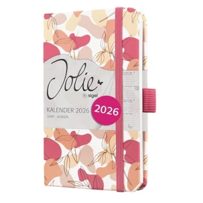 This diary is your colourful, exclusive companion for the whole year Elegant design meets practical features which enable perfect organisation in both your private and professional life Organise in style - with the popular Jolie weekly diary for 2026 (calendar: 2 pages = 1 week, DE/GB/FR/NL) in approx, A6 format (9,50 x 15 x 1,60 cm) with 174 pages (including 12 sheets perforated pages), The sturdy hardcover in pink/beige/white guarantees a firm writing surface Trendy cover design with a high-quality finish for stunning effects Extremely durable due to the high-quality stitched binding White paper (80 gsm, FSC-certified), printed in classy grey; Numerous pages with information, motifs and planning templates: monthly and annual overview (only EN), school and public holidays (DE/AT/CH/UK/FR/BE/NL), table of measurements, travel destinations, birthdays, and much more besides