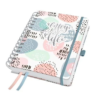 If you love hand lettering and bullet journaling, yet don't want to neglect your yearly planning, it's time to discover the bujo-style spiral diary from the SIGEL range This colourful designer diary combines perfect organisation with plenty of space for creative penmanship Also ideal for bullet journaling beginners, as several of the pages are pre-designed in bujo style For lovers of hand lettering and reliable planning: the versatile Jolie spiral diary Rose Inspiration for 2026 (calendar: 2 pages = 1 week, DE/GB/FR/NL) in approx A5 format (16,80 x 21,50 x 2,80 cm) with 240 pages (120 gsm, including 16 sheets perforated pages) The sturdy hardcover in pink/grey/mint guarantees a firm surface for writing and drawing Trendy cover design with a high-quality printed motif and glossy foil finish Durable due to the sturdy cover and high-quality metal ring binding White paper (FSC-certified), ideal for drawing, printed in classy grey; Weekly calendar with monthly and annual overview, numerous bullet journal pages with a planning section for each month (only EN), additional information section including school and public holidays (DE/AT/CH/UK/FR/BE/NL)