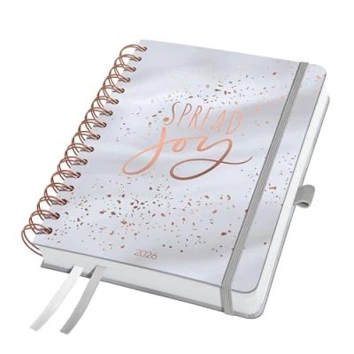 If you love hand lettering and bullet journaling, yet don't want to neglect your yearly planning, it's time to discover the bujo-style spiral diary from the SIGEL range This colourful designer diary combines perfect organisation with plenty of space for creative penmanship Also ideal for bullet journaling beginners, as several of the pages are pre-designed in bujo style For lovers of hand lettering and reliable planning: the versatile Jolie spiral diary Glittery Joy for 2026 (calendar: 2 pages = 1 week, DE/GB/FR/NL) in approx A5 format (16,80 x 21,50 x 2,80 cm) with 240 pages (120 gsm, including 16 sheets perforated pages) The sturdy hardcover in grey guarantees a firm surface for writing and drawing Trendy cover design with a high-quality printed motif and glossy foil finish Durable due to the sturdy cover and high-quality metal ring binding White paper (FSC-certified), ideal for drawing, printed in classy grey; Weekly calendar with monthly and annual overview, numerous bullet journal pages with a planning section for each month (only EN), additional information section including school and public holidays (DE/AT/CH/UK/FR/BE/NL)