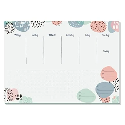 The beautiful Jolie tear-off paper desk pad is perfect for your weekly planning and offers plenty of space for notes The Rose Inspiration paper desk pad includes 30 A3 sheets (42 x 29.7 cm) Premium Quality Made of high quality paper (80gsm); Convenient A3 size: protects even small desks from scratches and stains Vegan and FSC certified: high-quality, environmentally friendly paper from responsible sources; made in Germany Durable, non-slip and completely flat thanks to sturdy back cardboard, colour-matching edge gluing, no bending of the corners