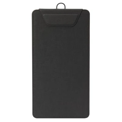 Designed for use e.g. in catering establishments for presenting menus that change frequently, this high-quality clipboard is also ideal for doctors' surgeries or clinics, or as a stand-up display for countertops in a wide range of establishments such as beauty salons, car showrooms, etc. Menu clipboard made of polyurethane (PU), black, with the dimensions 13 x 24,50 x 1 cm, for the DL format. Also suitable as a modern alternative to a bill folder. A concealed magnetic clip holds up to 20 sheets; With additional hook at the top for hanging; Practical stand-up feature: can be used standing at an angle or lying flat on the table Durable material (without softening agent), resistant to scuffing, scratches and general wear and tear Stackable and space-saving