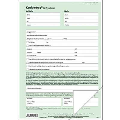 General purchase agreement of the sale of New or used products under private people. Even Through, 2-part form, separate with Carbonless form set for buyer and sell. The Contract corresponds to the Debts right Reform from 01.01.2002 Rechtssicher and up-to-date information: Always up to date with the latest legislation and right experts tested A fantastic mug to liven up your coffee break