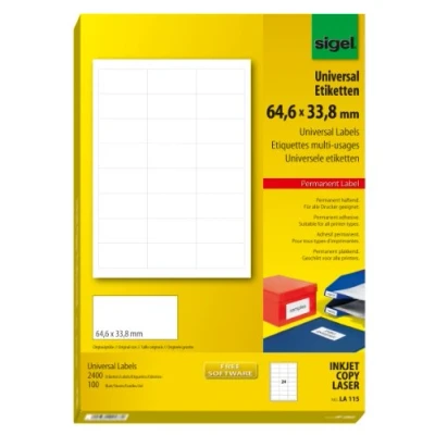 SIGEL LA115 Universal Permanent Labels, white, 6.46 x 3.38 cm, 2400 lbl = 100 sheets, white