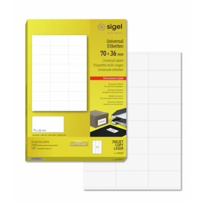 SIGEL LA132 Universal Permanent Labels, White, 7 x 3.6 cm, 2400 lbl equal to 100 sheets, White