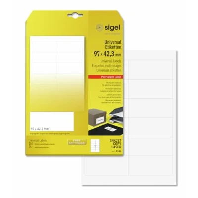 SIGEL LA140 Universal Permanent Labels, White, 9.7 x 4.23 cm, 300 lbl equal to 25 sheets, White