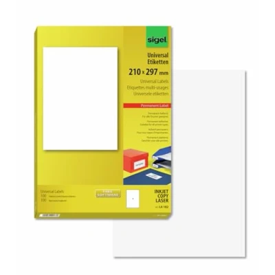 SIGEL LA182 Universal Permanent Labels, White, 21 x 29.7 cm, 100 lbl equal to sheets, White