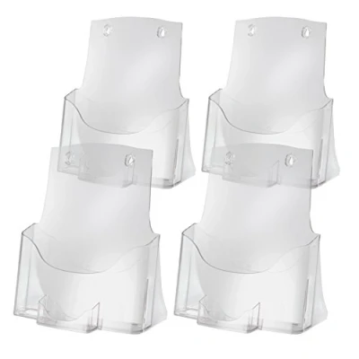 4 brochure stands for A4 (21 x 29,7 cm) leaflets, brochures, magazines, pamphlets, etc | and an additional business card compartment Product dimensions: 24 x 29 x 11,5 cm High-quality transparent, acrylic table-top displays (thickness 2 mm) with a racking depth of 30 mm With ribbing inside the base so that brochures do not slip down or crease and the curved back keeps the printed material perfectly upright - Furthermore, all holders can be combined by means of the linking mechanism at the side 25-year guarantee on the UV-resistance of the acrylic (the material will not Yellow) - Further information can be found below "Technical Specification"