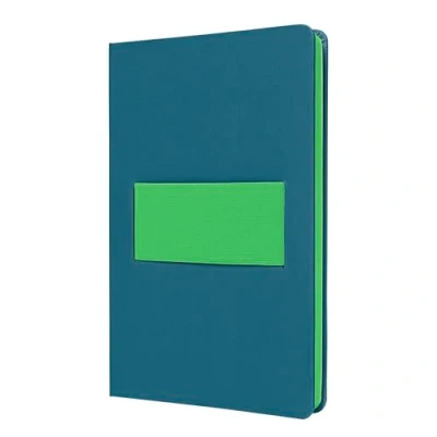 Entirely vegan notebook in a contemporary colour combination Notebook "Blue / Kiwi" with a hardcover in ocean blue/neon green, format approx A5 (14,80 x 21,30 x 1,60 cm), squared, with 176 pages Rigid cover made of colour-printed textured paper Extremely durable due to the high-quality stitched binding White paper (FSC-certified, 80 gsm), all pages firmly in the book; Wide elastic band on the front for holding a range of small utensils