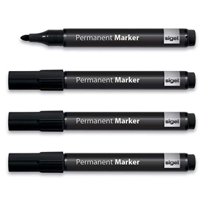 Writes perfectly on paper, plastic, static notes, transparency film, etc.: ideal for taking quick notes during presentations and training sessions Permanent: smudge-proof and water-proof Good coverage - the writing is clearly legible Marker with fast-drying cap-off ink - the pen does not dry out even if the lid is left off 4 Black pens with 1-3 mm round nib