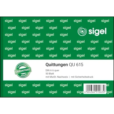 Form: receipt with VAT proof and cent amounts are shown separately Design: DIN A6 landscape white, without punch, with perforation Box contents: 1 book with 50 sheets Special feature: with forgery-proof document printing FSC certified: environmentally friendly paper from responsible sources, made in Germany