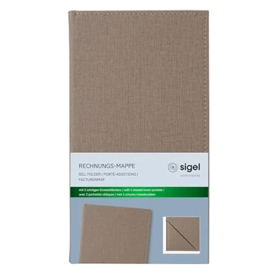 Timeless, high-quality bill folder especially for use in catering establishments Bill folder made of polyurethane (PU), beige, with the dimensions 13 x 23 x 1 cm Holds bills, receipts, cash and credit cards Two slanted insert pockets on the inside Hard-wearing cover with classy linen structure, easy to clean; Ideal addition to the SIGEL menu folders & beverage folders and the SIGEL clipboards
