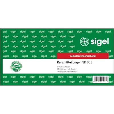 Sigel SD008 Kurzmitteilung 1/3 A4 Landscape First and Second Page Printed Carbonless Double 1 Items Pack of