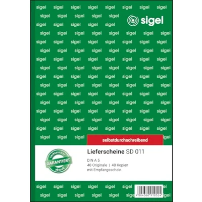 Sigel SD011 2fach mit Empfangsschein Delivery Note First and Second Page Printed A5 2 x 40 Pages Each Carbonless Pack of 1