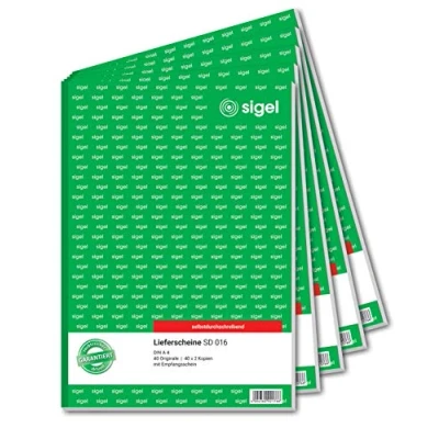 SIGEL SD016/5 Delivery Notes A4, 3 x 40 Sheets, Self Copying, Pack of 5, Made from Sustainable Paper