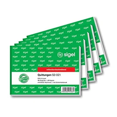 SIGEL SD021 A6 Landscape Receipt Pad, 5 Pieces, 2 x 40 Sheets, Self Copying, Standard Receipt, with 1 Duplicate, Micro Perforated, Made from Sustainable Paper