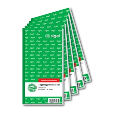 SIGEL SD024/5 Daily Report 10.5 x 20 cm, 2 40 Sheets, Self Copying, Pack of 5, Made from Sustainable Paper