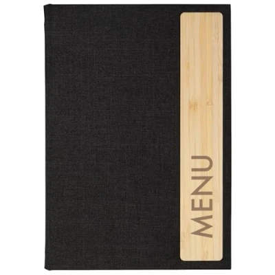 High-quality menu folder with a timeless design from the SIGEL range, ideal for daily use in food outlets of all kinds Menu folder with rubber binding, dark grey/beige, for the 148 x 210 mm format, high-quality cover made of recycled polyethylene (RPET), bamboo, polyurethane (PU) Modern mix of materials: RPET combined with bamboo, plus international wording Simply slide in the information and exchange as required Hard-wearing cover with classy linen structure, easy to clean; Resistant to scuffing, scratches and general wear and tear