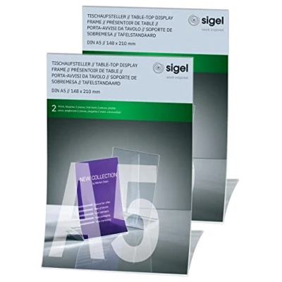 SIGEL TA160 Sign Holder, fold back, for A4, single sided presentation, rigid plastic, transparent, 2 Pieces