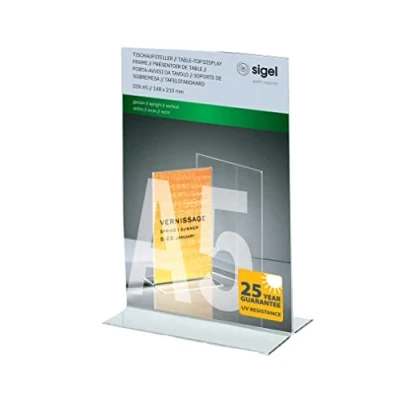 SIGEL TA222 Sign Holder, upright, for A5, double sided presentation, uv resistant...