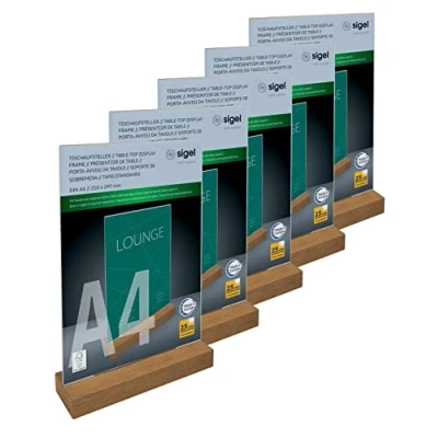 SIGEL TA256 Vertical table top display, acrylic, with oak base, for A4, 5 Pieces