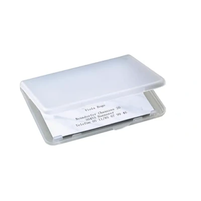 Practical transparent business card case made of plastic Extremely light and flatt - ideal for people who travel Keeps your business cards secure and protected For up to 100 business cards (max | 8,6 x 5,7 cm) The product dimensions are 10 x 7 x 1 cm