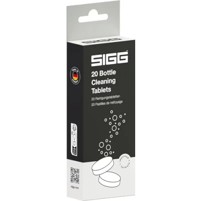 Quick Cleaning – With these cleaning supplies, any SIGG water bottle can quickly and easily be cleaned. It is ideal for washing now and then and on the go. Easy Use – The bottle cleaning tablets are easy to use – simply fill a bottle with water, add the tablet, wait for 30 minutes and rinse. The bottle will then be clean. Effervescent Cleaner – The sparkling cleaning tablets thoroughly clean water bottles. They remove unpleasant smells and allow your drinks to taste great. Complete Set – 20 pieces are included in this pack. The bottle cleaning tablets are a practical addition to the other cleaning products for SIGG bottles. Delivery & Details – SIGG water bottle cleaning tablets, quick and easy cleaning in 30 minutes, for all SIGG bottles