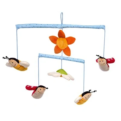 Fabric mobile with colourful flowers, bees and ladybirds. Suitable for above the changing table or crib - a great eye-catcher for babies in the first year Cute design and colourful cotton/micro plush mix: 2 colourful flowers, 2 flowers and 2 bees on 3 levels - beautiful spectacle for your little one Great activity for the baby to observe and discovery: soft fabrics in bright colours, pleasant feel and harmonious shapes - ideal over the changing table or cot (sold separately) Sigikid mobile holder (item no. - 49002 or 75090)) Care instructions: hand wash, robust and stable, use of baby-friendly materials, tested for harmful substances, no chemical odours Box contents: 1 sigikid mobile with bees and ladybird, outer material: 100% polyester, inner material: 100% polyester, multi-coloured, recommended age: 0-12 months, dimensions: 31 x 32 x 3 cm, item number: 42536, Manufacturer: sigikid, H.Scharrer & Koch GmbH & Co. KG