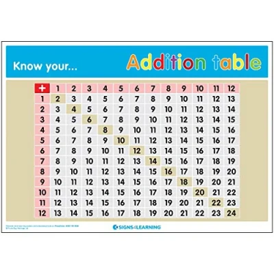 Signs 4 Learning know Your Addition Table A2 Poster, Premium, 420mm x 594mm