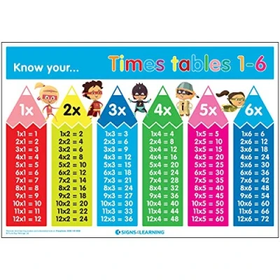 Signs 4 Learning know Your Times Tables 1 6 A2 Poster, Standard, 420mm x 594mm