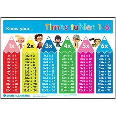 Signs 4 Learning know Your Times Tables 1 6 A3 Poster, Standard, 297mm x 420mm