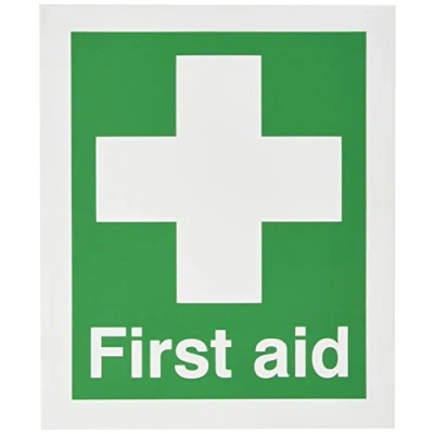 AmazonFirst Aid information sign Universal symbol and colour scheme Instantly recognisable to users Indicates first aid points and equipment Self-adhesive - no need for tools