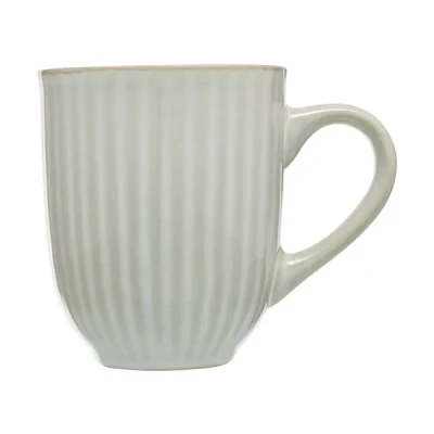 This Siip Ribbed Light Grey Mug is perfect for a relaxing mug of tea or a fresh coffee in comfort. The glaze of this green mug is unique due to the reactive glaze making each mug as individual as you.The ribbed light grey mug is made from stoneware and is dishwasher safe for easy and convenient cleaning.The mug has a capacity of 400ml and can be used in the microwave for warming the contents up.Size: 10.5(H) x 9(W) x 12.5(L)cm.