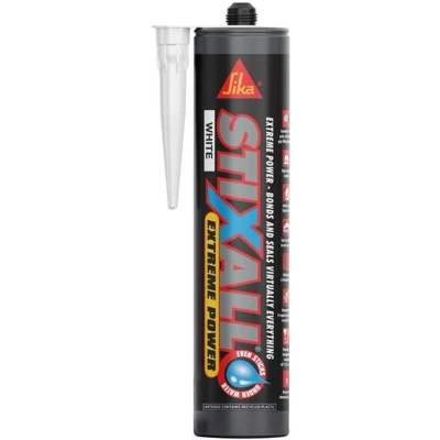 Everbuild Stixall Extreme Power Cartridge is a high-performance, one-part chemically curing adhesive and sealant that expertly combines the best characteristics of both silicone and polyurethane technologies. This versatile product is specifically formulated for adhering a variety of building surfaces, making it an essential addition to any toolkit for both professionals and DIY enthusiasts.