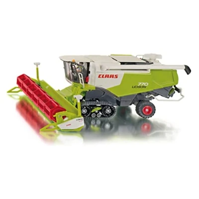 Detailed toy model of a Claas Lexion 770 combine harvester for acting out agricultural scenes A wide range of features: Adjustable and detachable cutting unit with corresponding trailer, Oscillating crawler tracks, Pivoting tank pipe, Opening grain tank flaps, Steerable via turning knob Incredibly durable: Mostly metal construction, Excellent mobility thanks to crawler tracks and rubber tyres Ideal gift for young and old farming enthusiasts Contents: 1x siku 4258 Claas Lexion combine harvester on tracks, Scale: 1:32, Material: metal/plastic, Dimensions: 38 x 29.6 x 13.8 cm, Weight: 1.69 kg, Colour: Green, Series: SIKU Farmer, Manufacturer: Alpha Toys