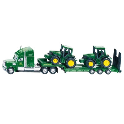This sturdy truck with a low loader from SIKU includes 2 John Deere tractors. The sturdy truck with a low loader is completely in John Deere style and guarantees hours of fun. Because the product is largely made of metal, it is of very high quality. SIKU used special paint so it does not wear out and is therefore extremely safe for children. The set is made on a 1:87 scale and can therefore be ideally combined with other SIKU products made on this scale.