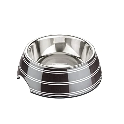 Feeding or drinking bowl with melamine housing With removable stainless steel bowl Melamine: high impact and scratch resistance Non-slip rubber edge on the base Easy-care and dishwasher-safe