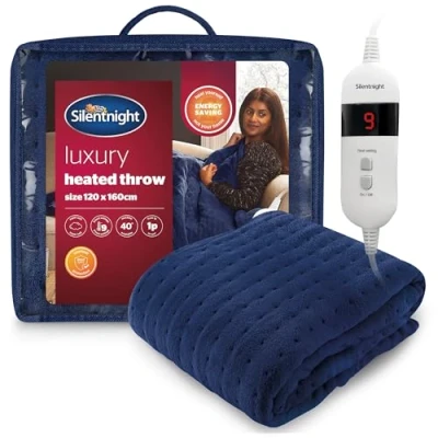 SUPER SOFT: Covered in a super soft fleece for maximum cosiness, our heated throw is perfect for the colder months. Measures 120 x 160cm. COSY WARMTH: The throw heats up in just a few minutes so you can snuggle up and enjoy extra cosy comfort. 9 HEAT SETTINGS: Featuring 9 heat settings so that you can control your comfort and choose the warmth that suits you best. Choose settings 1-6 for slower heat up and moderate warmth, or 7-9 for faster, ultimate cosiness. RELAX SAFELY: Features Heatsafe overheat protection for total peace of mind. The Silentnight Heated Throw is uniquely designed with stitched channels to prevent dangerous hots spots, plus features auto shut off after 2 hours for safety. As with all electric blankets, we recommend they are switched off before you go to sleep & constant use at highest temperature is avoided. MACHINE WASHABLE: Machine washable to keep your electric blanket feeling fresh and hygienic