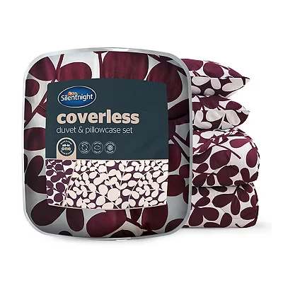 Silentnight Coverless Leaf Print Duvet & Pillowcase Set Supersoft Stylish 10.5 Tog Bed Quilt Two Reversible Designs All Year Round Comfort No Cover Needed, Machine Washable, Berry, King