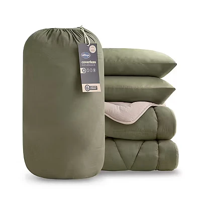 Silentnight Coverless Luxury Washed Duvet & Pillowcase Set Soft Stylish 10.5 Tog Two Reversible Colours Bed Quilt All Year Round Comfort No Cover Needed, Machine Washable Olive Natural, Single