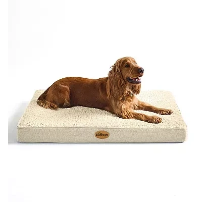 Silentnight Crate Dog Bed Orthopaedic Firm Support Pet Mattress Non Slip Base Comfort & Mat Reduce Pressure on Joints, Removable and Washable Sherpa Cover, Extra Large 81x112cm, Natural
