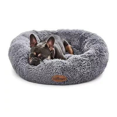 Silentnight Donut Calming Dog Bed Cat Pet Anxiety Relief Soft Fluffy Doughnut Pillow Easy Clean Machine Washable Luxury Plush Basket 70cm Grey