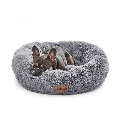 Silentnight Donut Calming Dog Bed Cat Pet Anxiety Relief Soft Fluffy Doughnut Pillow Easy Clean Machine Washable Luxury Plush Basket, Extra Small, 60cm, Grey