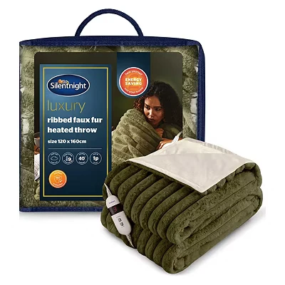 Boots225 Advantage card points. Silentnight Luxury Ribbed Faux Fur Heated Throw 9 Heat Settings Olive Green FREE Delivery on orders over 45 GBP.